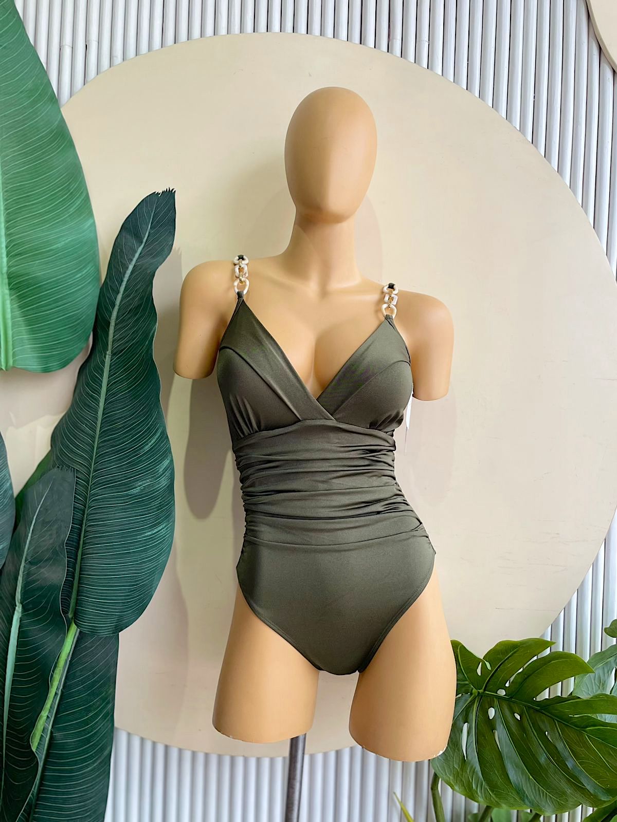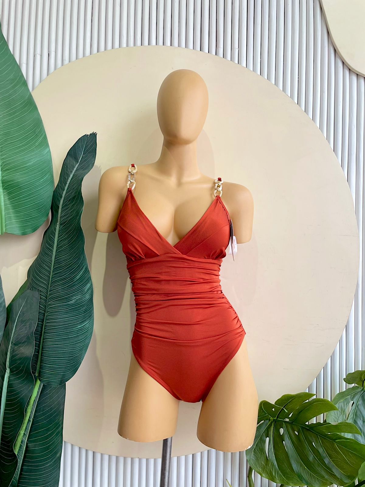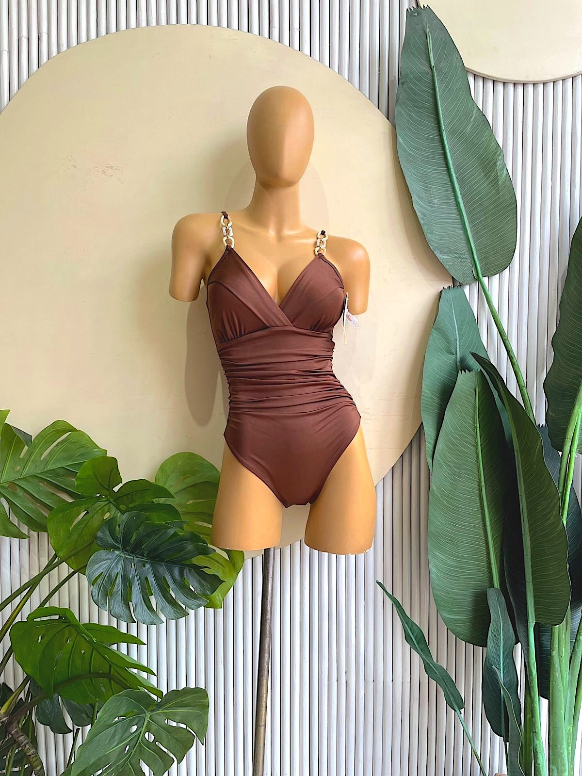 Este espectacular traje de baño en color café cocoa luce aún más lindo en persona: un tono cálido, sofisticado y totalmente en tendencia, que realza la piel y aporta un aire de lujo discreto.