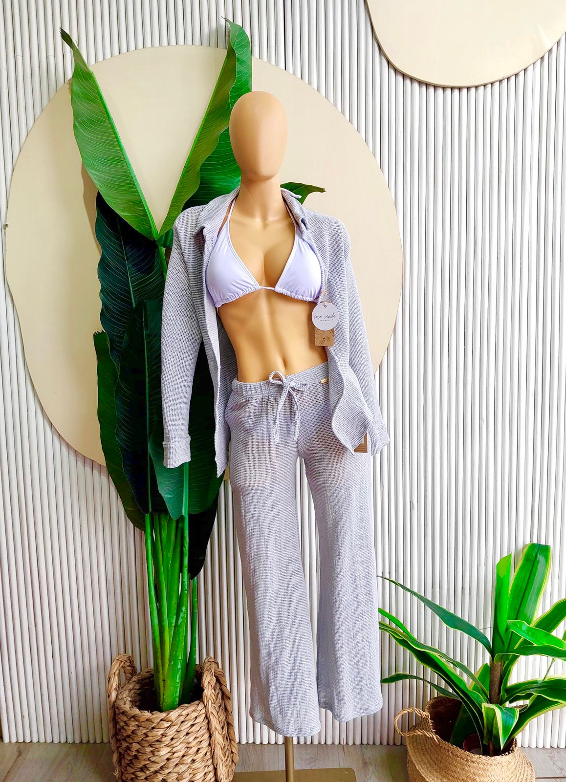 La camisa, con su corte relajado y mangas largas, es lo suficientemente versátil como para combinarla con diferentes estilos de trajes de baño, añadiendo un toque chic y moderno a tu atuendo. Ya sea para protegerte del sol o simplemente para agregar una capa extra de estilo, esta chaqueta es un imprescindible en tu guardarropa veraniego.