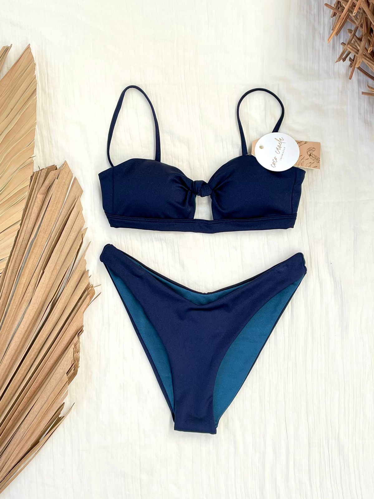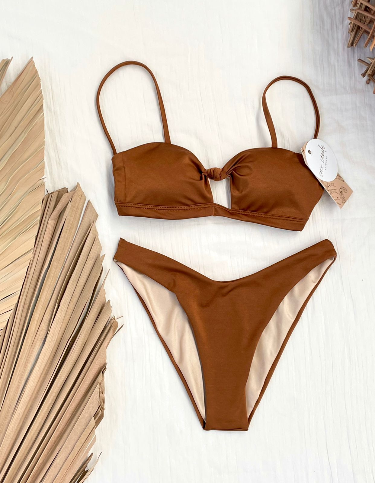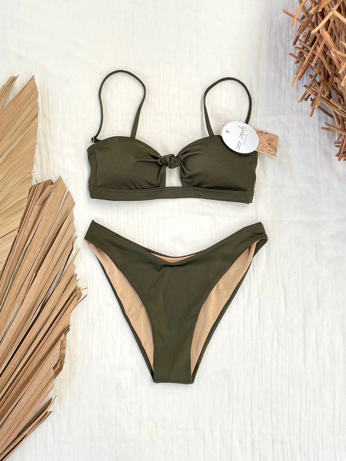 Este bikini rojo vibrante de Coco Canela Swimwear es la elección perfecta debido a que es dos vistas para quienes desean destacar con un estilo atrevido y sofisticado. El top cuenta con tirantes delgados ajustables y un encantador detalle de nudo en el centro, añadiendo un toque de elegancia a tu look veraniego. La parte inferior, con su corte clásico, ofrece una cobertura cómoda y favorecedora, realzando tu figura de manera natural.