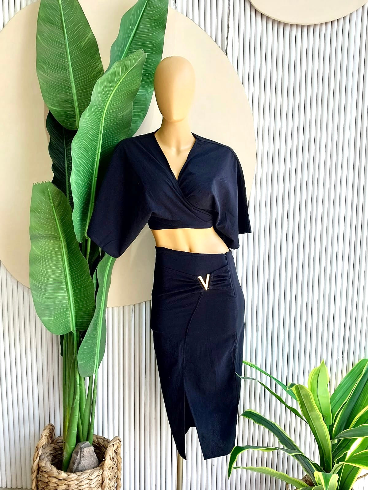 Confeccionado en un material suave y fresco, este conjunto es ideal para cualquier ocasión, desde un almuerzo al aire libre hasta una salida nocturna. Su versatilidad permite combinarlo con diferentes accesorios, garantizando que siempre destaques con un estilo impecable y moderno.