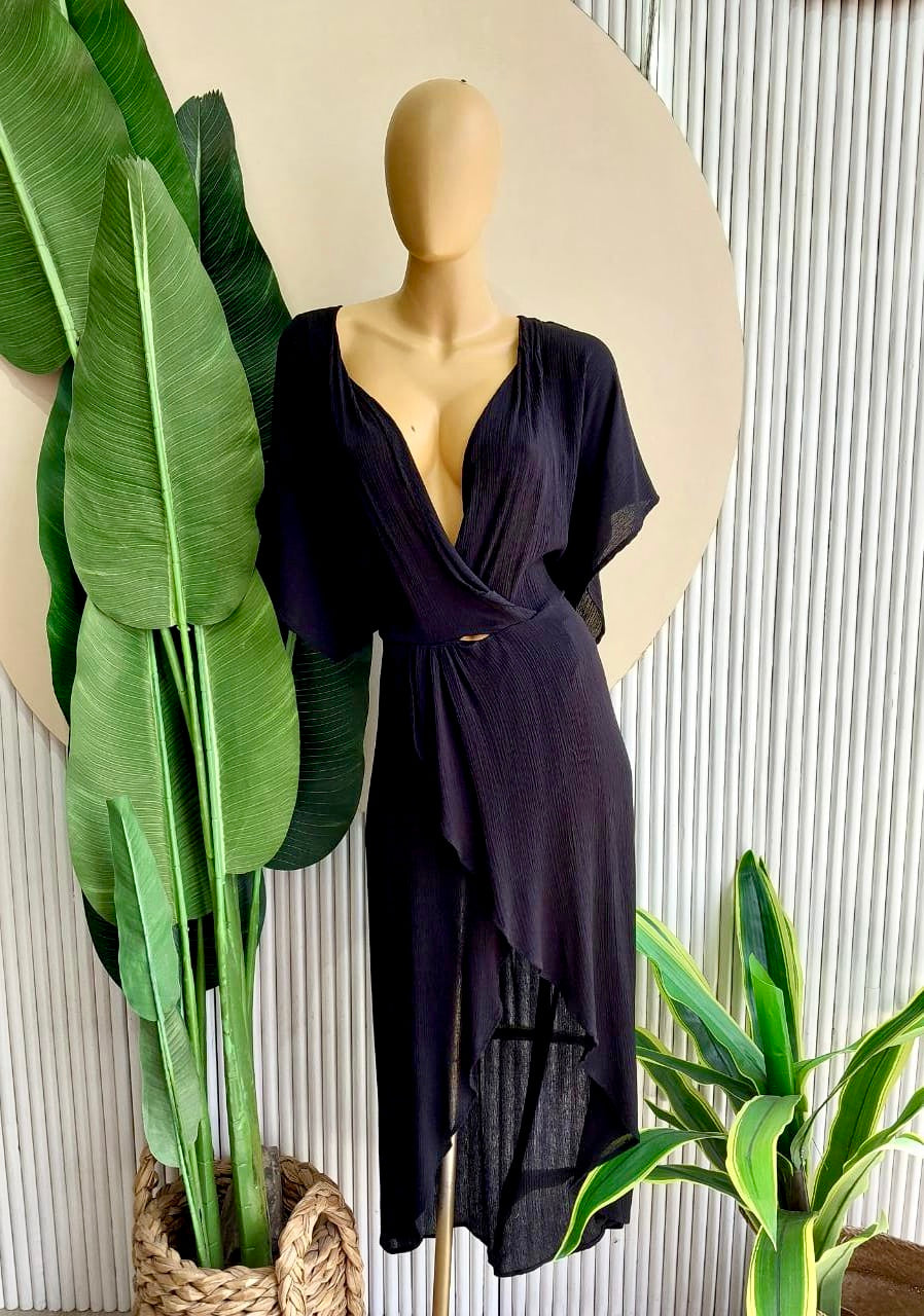 • Detalles: Escote pronunciado, diseño cruzado, mangas amplias, corte asimétrico