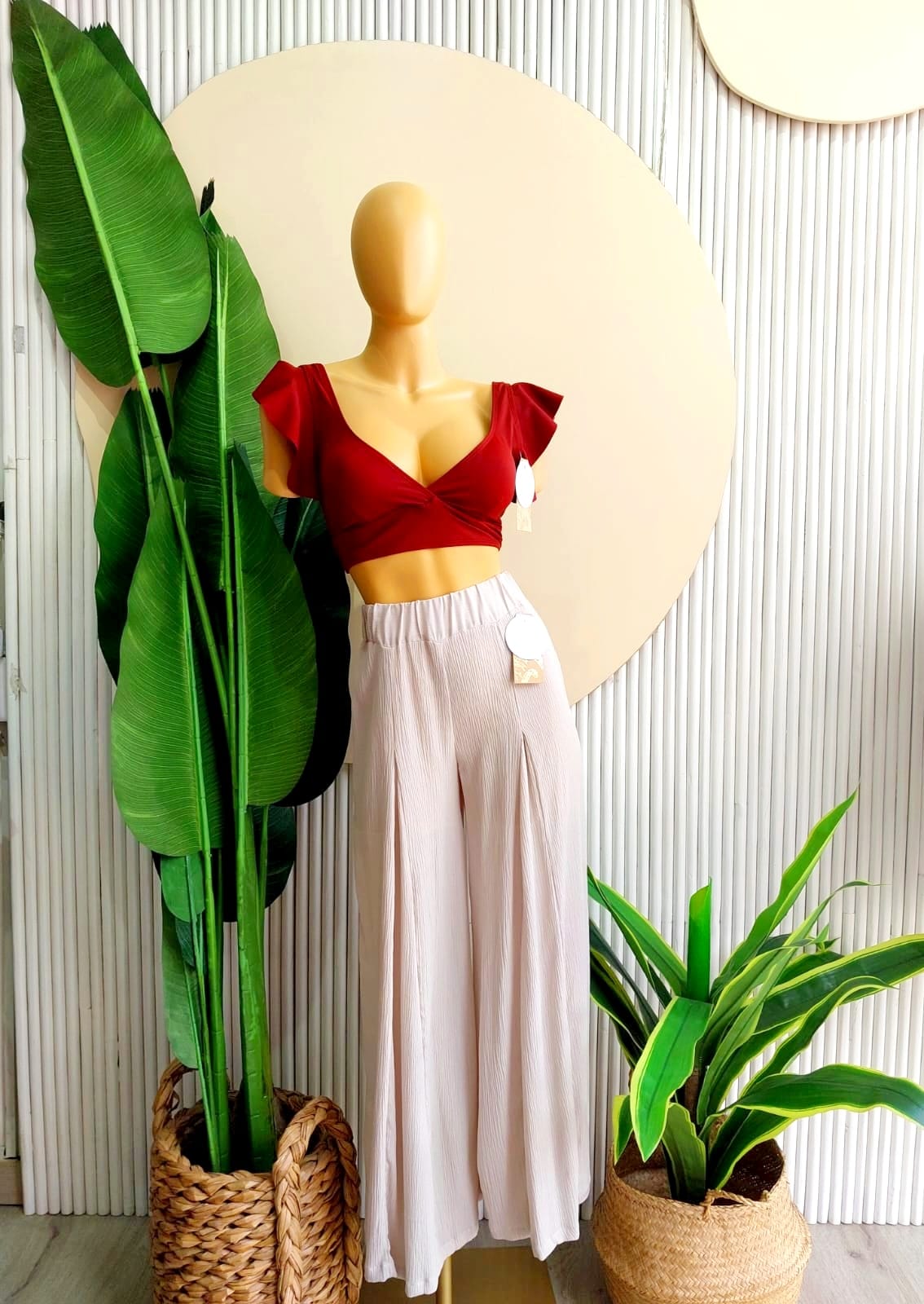Este pantalón de Coco Canela Swimwear es la pieza clave que necesitas para crear un look fresco y sofisticado. Con un diseño de cintura alta y pierna ancha, este pantalón ofrece una silueta fluida que alarga visualmente la figura, brindándote una apariencia elegante y relajada. Su tejido ligero asegura comodidad durante todo el día, haciéndolo ideal para esos días de verano en los que quieres mantenerte fresca sin perder el estilo.