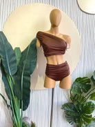 Diseño de un solo hombro, este corte no solo estiliza el cuello y el escote si no que aporta un aire moderno y audaz. Su fruncido lateral crea un efecto visual favorecedor en el torso, perfecto para robar miradas sin decir una palabra.❤️