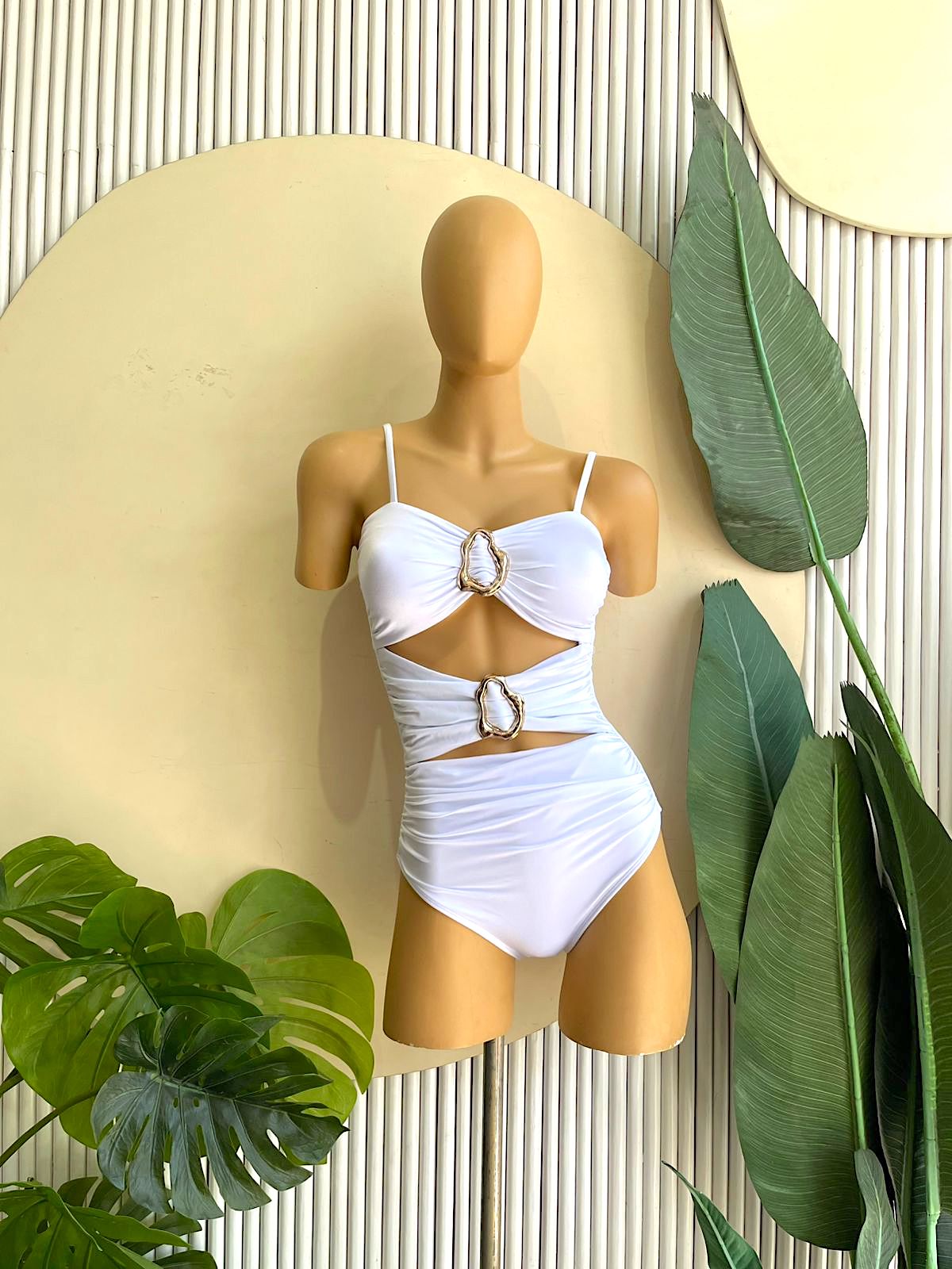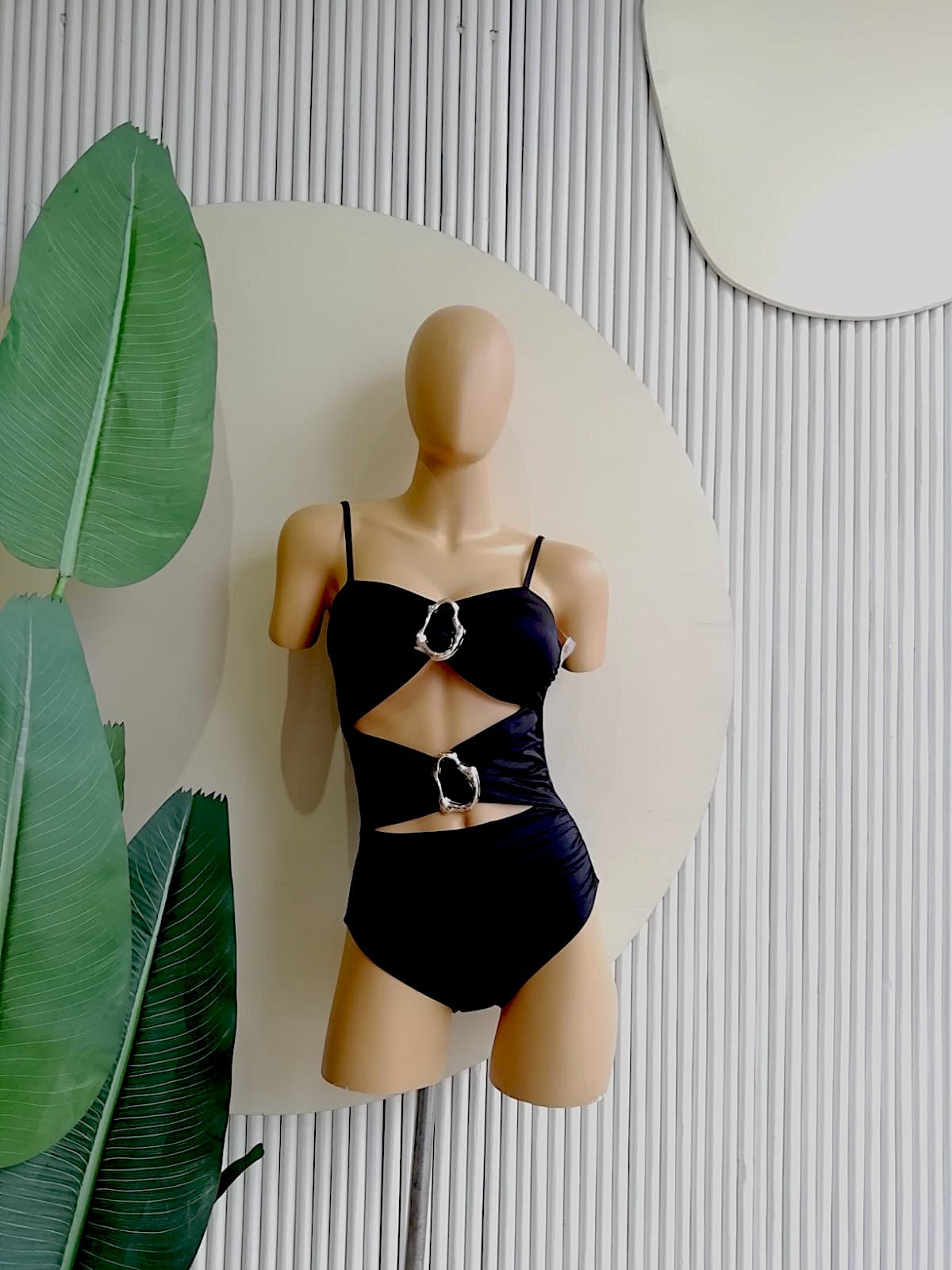 🔹 Hebillas metálicas decorativas irregulares en el busto y el abdomen, que aportan un toque único y moderno.
